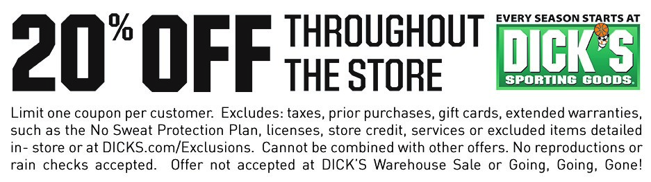 During this time, you will receive 20% off throughout the store! The discount applies to all of your baseball/softball needs including gloves, bats, batting helmets, cleats, pants, apparel, bat bags, eye black, and more! The offer is valid on anything in store with standard exclusions as noted on flyer and at the discretion of the store. We hope you take advantage of the great savings on all of your baseball/softball needs for the upcoming season!